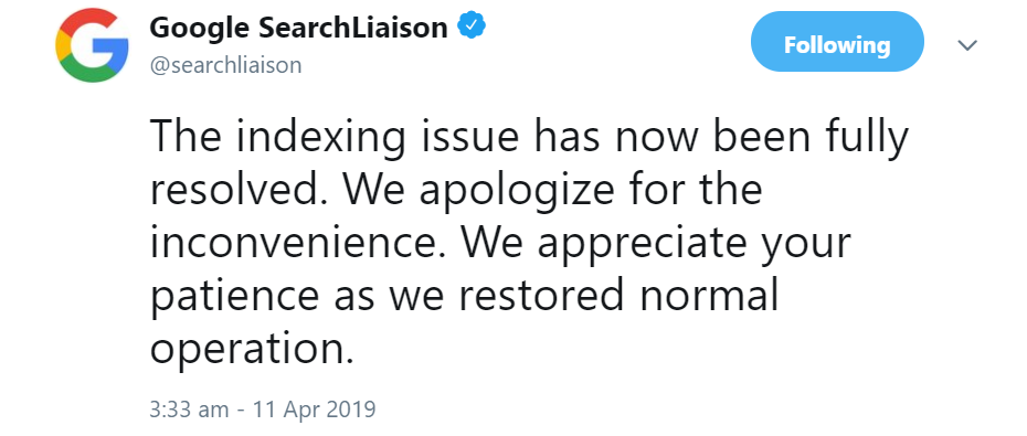 Google erklärt das Deindexierungsproblem nun für vollständig behoben